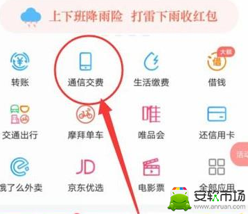 2、点击进入首页之后就可以直接在首页上点击【通信交费】点击之后就可以进入下一个页面。