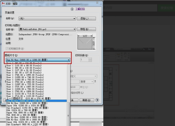 4、然后在图纸尺寸选项尽量选择较大的数据,以便使导出的图片清晰。