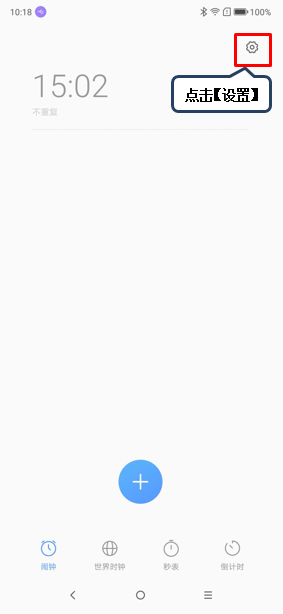 在闹钟界面点击右上角【设置】图标进入闹钟设置界面,可设置【上下滑动均可关闭闹钟】、【关机闹钟】和【在通知中心显示即将响起的闹钟】。