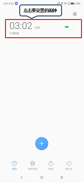 在闹钟界面点击要设置闹钟,可对该闹钟的【时间】、【重复】、【铃声】和【稍后提醒】等进行设置。