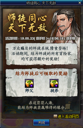* 符合师父和徒弟条件的玩家,可以去找NPC怀隐来获取资格。