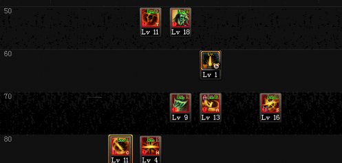 50-85技能:取舍就在于60与70级的技能上,60技能在漩涡的15秒输出环境中推荐放弃,此技能虽然干脆利落,但数据极低,都满级的情况下略微逊色40级技能幻鬼回天。