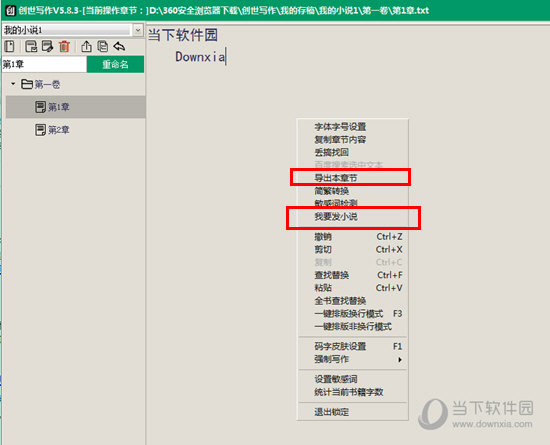 2、另一半办法是在小说的章节中选中章节右键进行操作,,如下图所示: