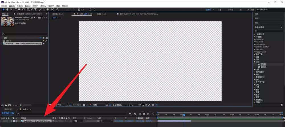 我们首先需要打开ae软件,然后导入图片,发现画布中并没有显示图片。