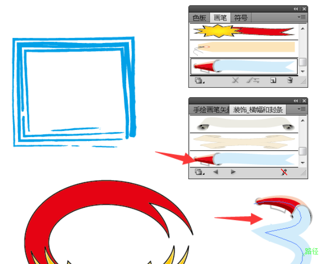 然后在上方路径描边处,我们还可以给应用的笔刷换颜色,如图所示: