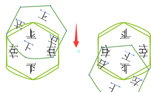 一起选中这两个图像,点击水平镜像变换,点击复制,可以看到效果是以新的中心点的线水平镜像的复制了我们选中的两个图像。