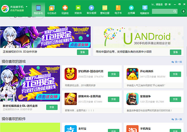 1、下载安装并运行360手机助手软件