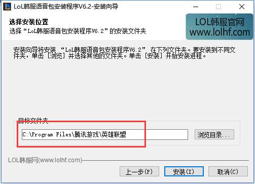 4、图上目录路径是默认的,选择自己电脑上LOL国服的安装位置