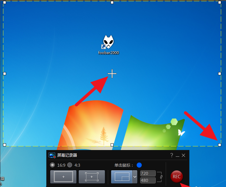 如果是要录制区域,直接点击第三个图标,选择一定的尺寸,