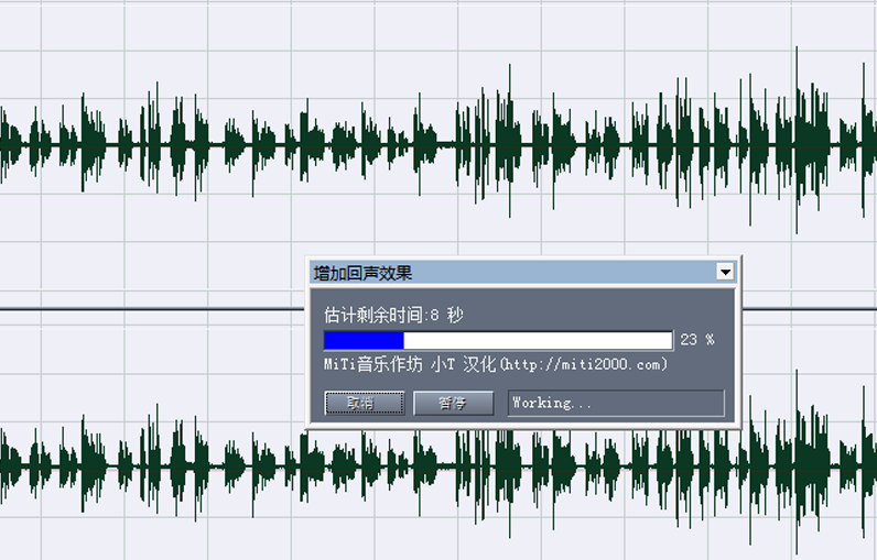 这时会弹出“增加回声效果”的进度条,等待结束,再次试听效果,
