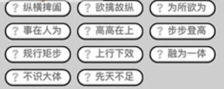 纵横捭阖、欲擒故纵、为所欲为、事在人为、高高在上、步步登高、规行矩步、上行下效、融为一体、不识大体、先天不足。