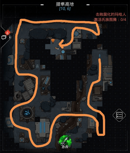 地下甬道(进去后打一组怪,点继续前进,直到出现轮盘,随机转轮盘转到遗骸就行,转到腐蚀液体减血)