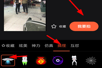 2、第二步:在其中点击“特效”选项进入相关页面,我们可以从“搞怪”的分类里找到“飞碟”特效,从而继续下一步编辑。(如下图所示:)