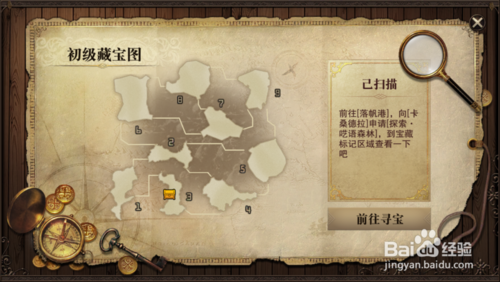 首先,我们需要有宝藏地图,如果自己的寻宝等级低,是没有办法开启更高级的地图的,我们打开地图