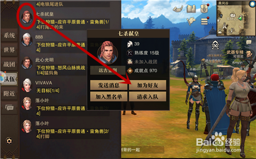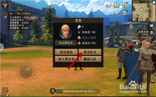 继续点击头像,会出现一个个人信息栏目,点击添加好友,发送添加好友申请。