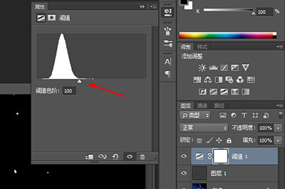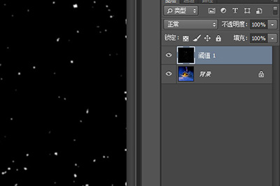 4、接下来点击图层界面下方中的第四个按钮,在弹出来的菜单中选择【】,然后将中的小三角往左滑动,直到你画面中的雪花数量让你满意为止。