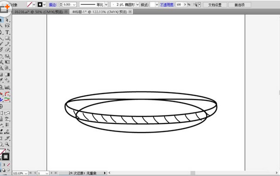 首先我们打开ai软件,先用钢笔画出装置水果与蔬菜的竹篓,重点就是顶端与侧面两个部分的路径。