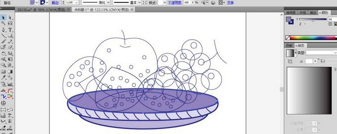 最后画出果盘当中的葡萄的路径,可以不断的复制葡萄让其成为一串。