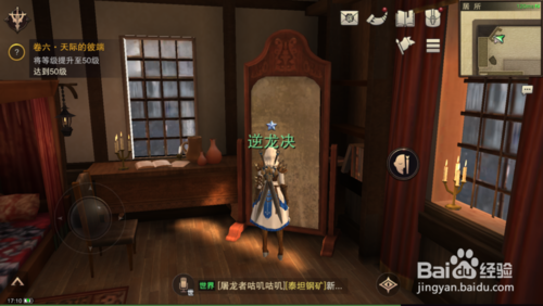 在居所这里,我们会看到一面镜子,我们需要站到镜子前,然后出现那个化妆的图标,我们点击那个图标
