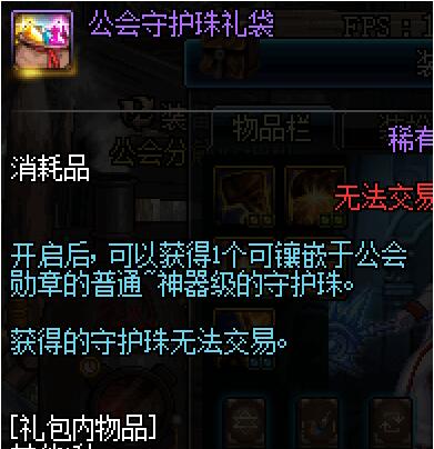 最后有一个福~利改版,那就是通过公会地下城会获得公会守护者礼袋,打开可以获得随机品阶的守护珠。