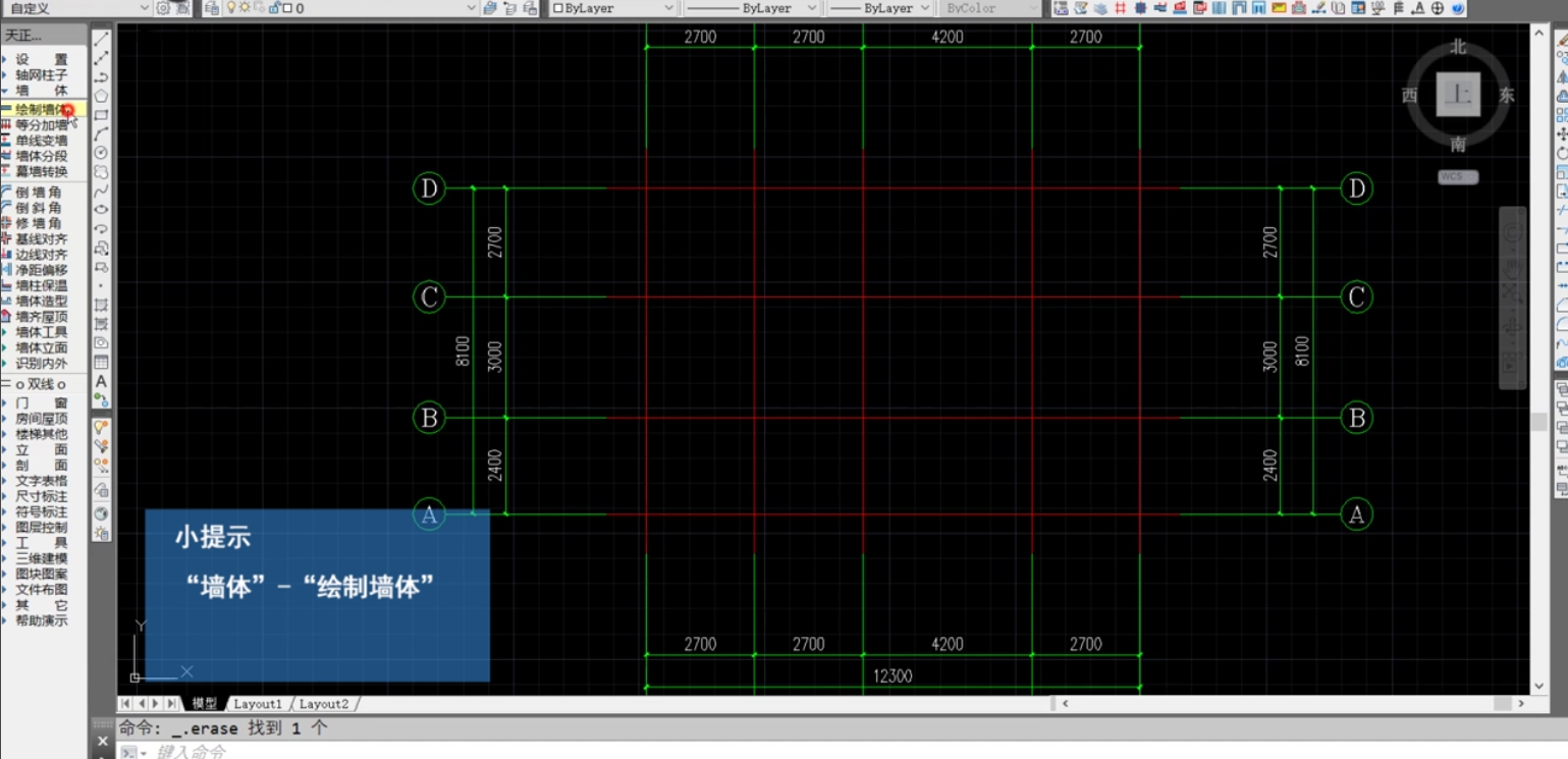 1、首先使用天正建筑CAD 2014开启需要绘制墙体的图纸文件。