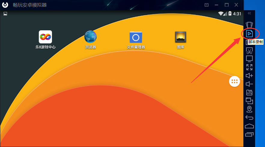 1、先打开畅玩安卓模拟器,然后在其右侧的功能列表中打开“脚本录制”;