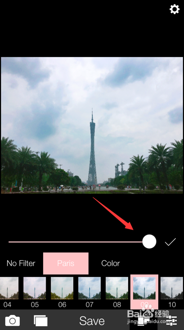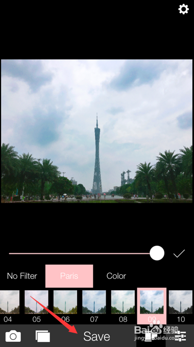 调整到自己满意的效果后,点击页面正下方的save就能将这张照片保存到手机本地了