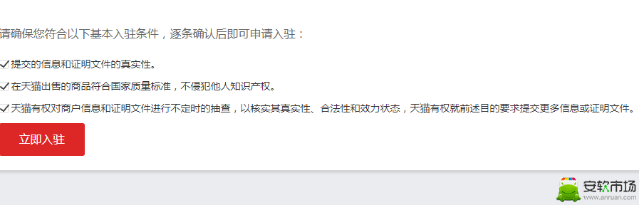 4、将页面中的选项全部勾选,点击下面的“立即入驻”。