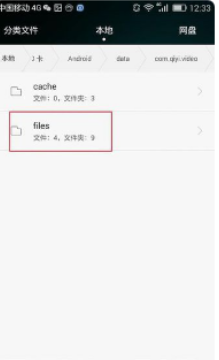 2、进入sd卡后,依次点击”Android/data/com.qiyivideo/files“文件夹。