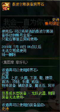 使用后,可以将所选的泰波尔斯装备移动到账号金库。只能在赛利亚的房间使用。