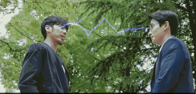 再选中调整图层,在其“效果控件”面板中找到“闪电”,修改“起始点”数值(即位置:上下 左右),放于左侧人物眼睛处(这里不列举具体数值,根据自己画面决定),修改“结束点”数值,放于右侧人物眼睛处