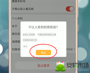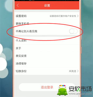 3、之后我们就在设置的页面中选择【不再让别人看见我】,把后面的滚轮打开。