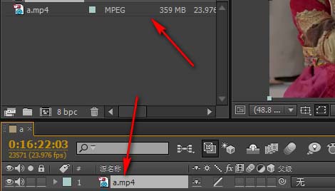 这时如图所示,双击视频之后,AE里就会自动生成一个“图层”,在这里就能剪切视频了。