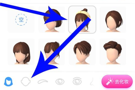 2、点击“美颜”按钮之后,我们便会进入到详情操作界面,在该界面,我们就可以调整人物的默认脸型了,包括多种脸型选择,并且包含了发型、眉毛、眼睛、嘴唇、耳朵等不同类型的选择。