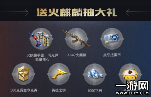 1.活动期间,在CF手游专区累计送出礼物"火麒麟"每满50个即可参与1次抽奖,获得以上奖励!