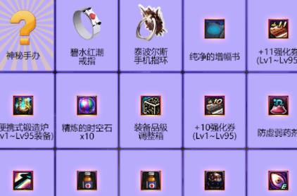 周边奖励、纯净的增幅书、+11强化券、锻造炉、精练的时空石、装备品级调整箱、防虚弱药剂、神圣的强化保护券、魔界抗疲劳秘药、强烈的气息、厄伽勒变身药水中随机获得。