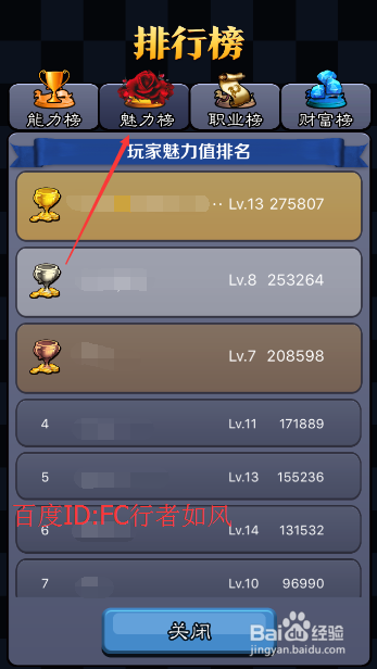 点击排行榜上方的“魅力榜”按键进入到魅力榜页面,在这里会看到当前所在的服务器哪些玩家是最具魅力的。