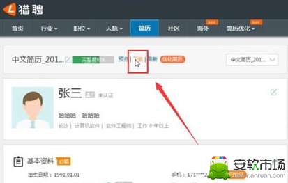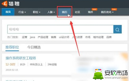 1、首先我们需要在爱电脑上面打开登录【猎聘网】之后我们在主页的上面选择【简历】;