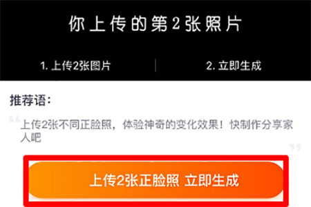 3、接着我们进入到编辑界面,在该界面我们需要上传两张正脸照片作为素材,上传完毕之后,“小影”小程序就可以帮我们自动生成“人脸渐变”的视频,非常的简单方便!