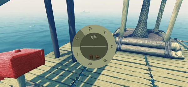 在我们可以建造工具的时候,锤子是必须的,锤子的功能也是很多的哦,我们建造木筏的关键所在,手拿锤子时,按住鼠标右键以进入锤子的多功能菜单。