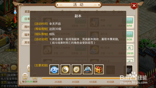 副本可以得到大量道行,还可以得到装备和稀有道具的奖励,每天可一次,30级就可以做。
