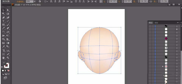 用肤色填充头部与耳朵,接下来用网格工具做出肤色渐变效果。