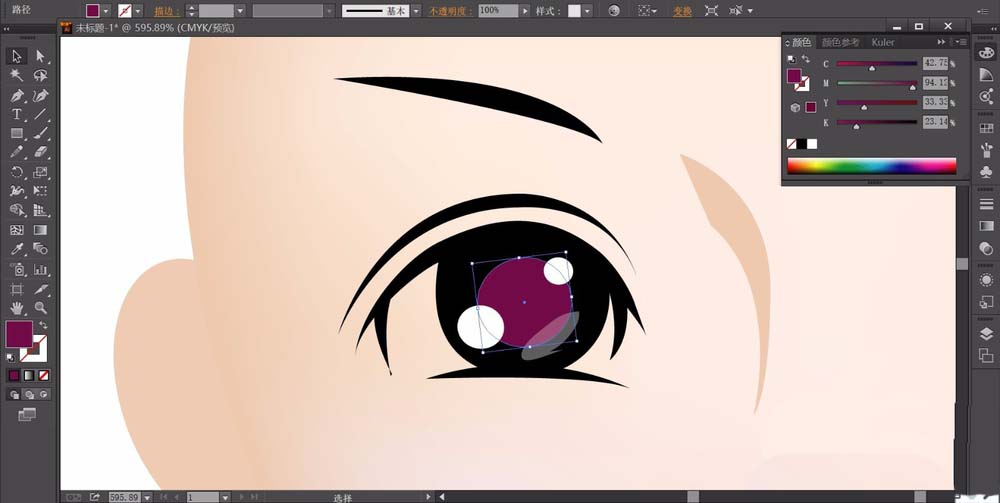 用同样方法绘制女孩的右侧眼晴与眉毛,接着来画女孩头发路径,不仅是主体的头发,还有头发上面的高光区域。