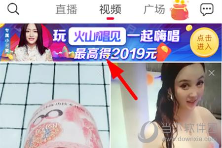 1.首先我们要点击打开进入到火山小视频界面当中,这个时候我们就可以通过“视频”界面顶端横幅上有一个“火山唱见”,点击就可以进入在活动界面一起抢麦唱歌了。