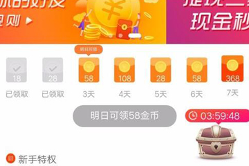 登录软件后点击中间的领现金,在这里按照提示做任务获取金币,比如日常任务,签到、新手特权等;
