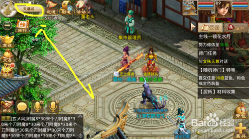 首先我们需要登录我们的问道手游,来到天墉城,点击左上角的天墉城几个字,打开天墉城的地图。