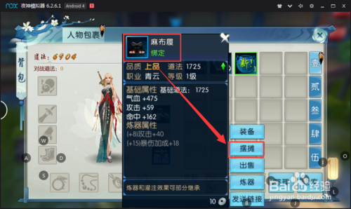 诛仙手游摆摊操作方法二:玩家直接打开角色包裹,然后点击打开需要出售的装备道具详情页菜单。点击菜单中的摆摊即可快速上架。