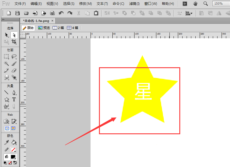 首先我们打开Fireworks软件,然后在画布中,绘制一个图形和文字内容信息,如图所示