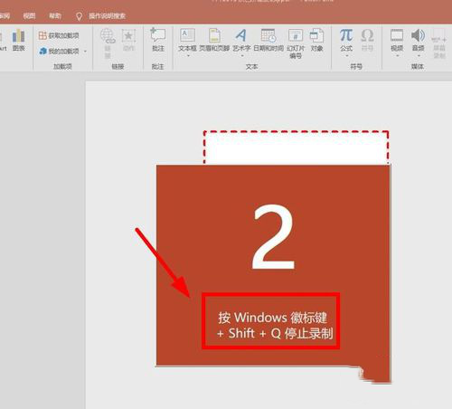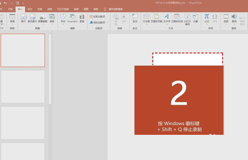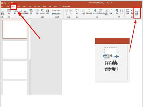 屏幕录制功能在【插入】选项卡下,点击【插入】菜单,在功能区的最右侧可以看到【屏幕录制】按钮。