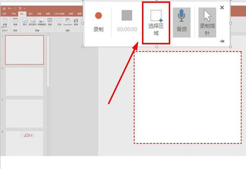 点击【屏幕录制】,弹出一个带有录制按钮的小框框,点击中间的【选择区域】,在屏幕上用红色的虚线圈定一块录屏区域,只有红色方框内发生的操作被录下来,此区域外的录不下来。